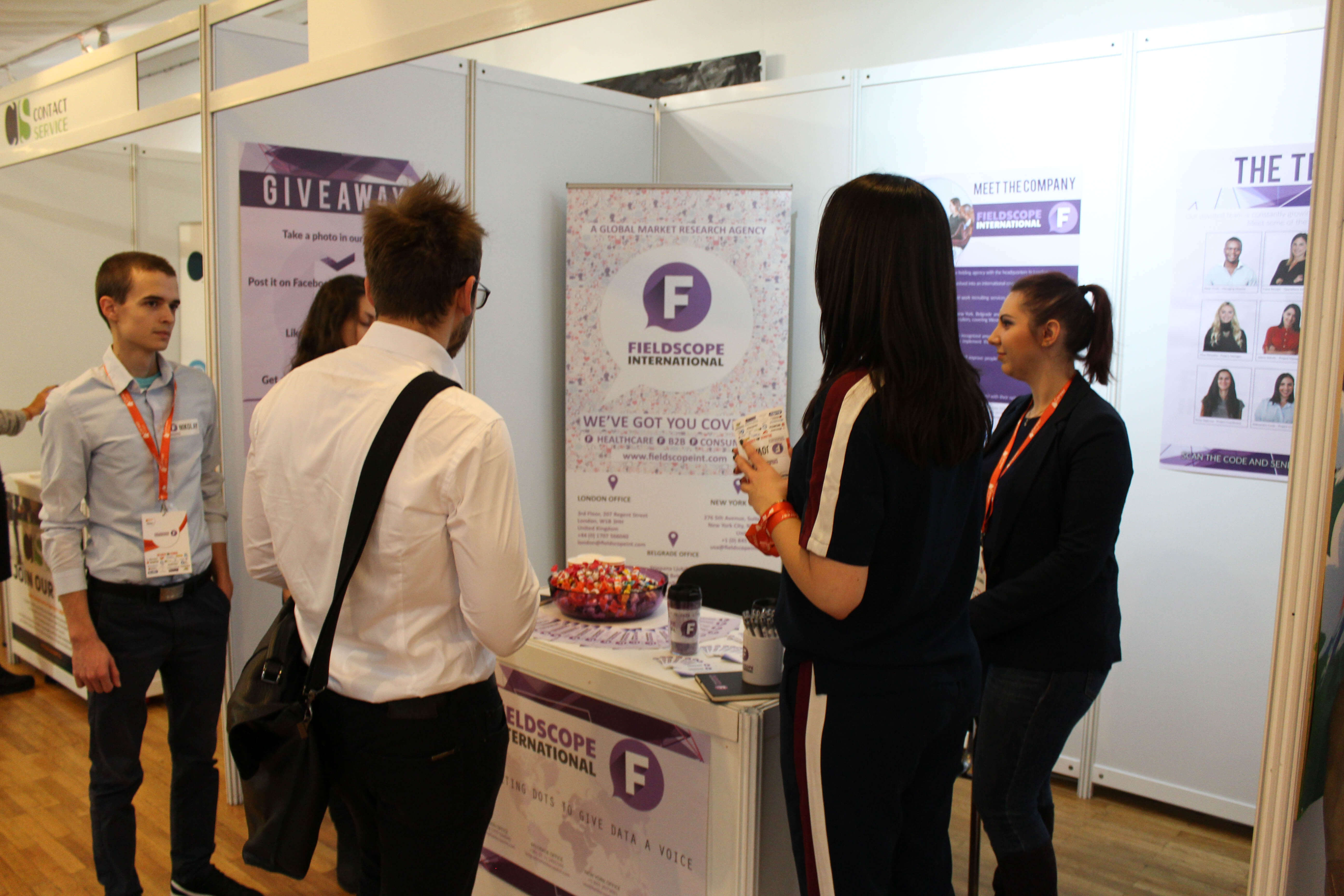 This year, we decided to join 17 other companies and use this opportunity to meet a number of talented and ambitious people. Our office in Belgrade has been active for a little less than two years, and it is still not widely recognized amongst job seekers. This gave us an advantage compared to some bigger companies that attended the event, as the attendees kept approaching our booth, wanting to find out more about what we do, and how are we doing it. Market research is still an undiscovered area for students, so we had an opportunity to talk with enthusiasm about our passion.